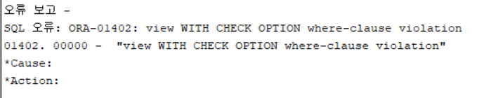 - VIEW에서 데이터 수정 시, 해당 데이터가 VIEW의 정의 조건을 만족해야 함