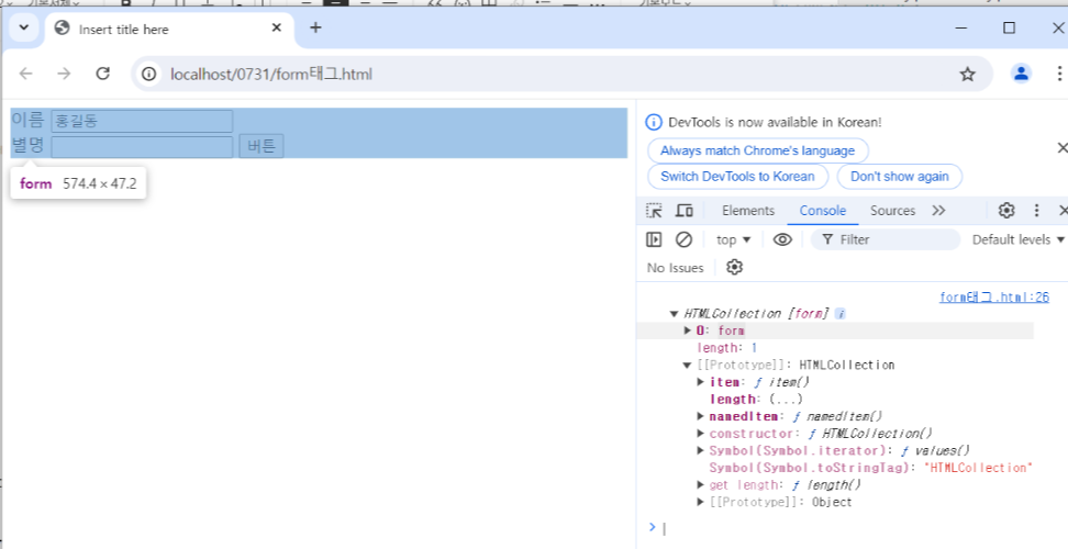form에 마우스 갖다대면 form요소가 표시됨
